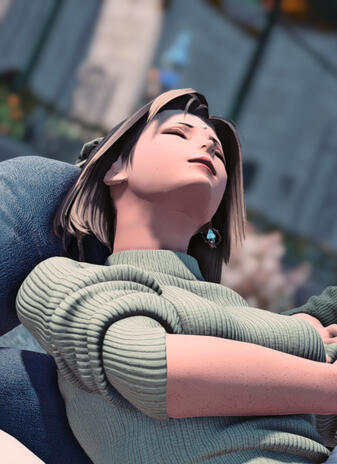 While not sharing the supremacist views of her comrades and not holding ill-will against the people of Eorzea, her treatment at the hands of various Eorzean citizens has often made her hesitant to interact with anyone hailing from the land. While cordial, she will often seem unengaged and at times intimidated.