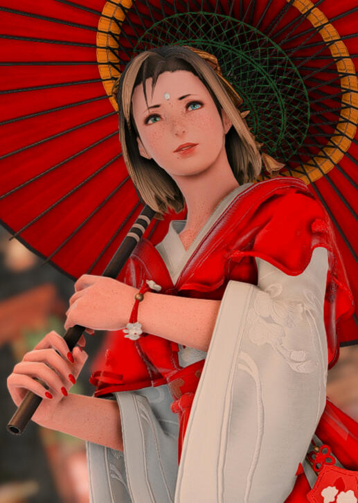 As expected, Ophelia is frequently sighted not only in Kugane, but also in many areas of Hingashi and Othard all together. She's usually working on one assignment or another, but she's always inclined to guide if needed and take a stop for rest in Yanxia.In Kugane, she can be found in places high and low, of well-repute and of ill-repute. Whether she has her dice in hand in a game of cho-han or her robes drawn tight as a geisha, she's more social in this environment than any other.